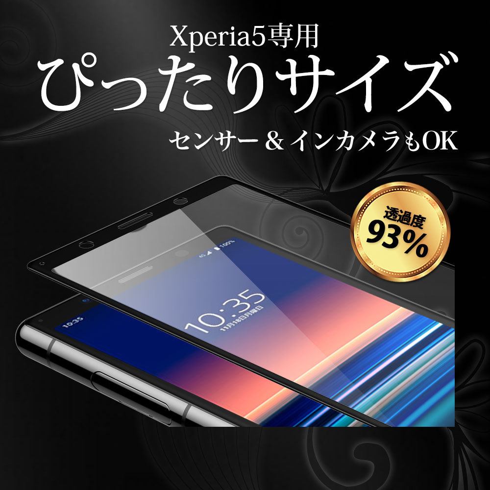 Xperia5 ガラスフィルム SO-01M SOV41 全面 保護 吸着 日本産ガラス仕様