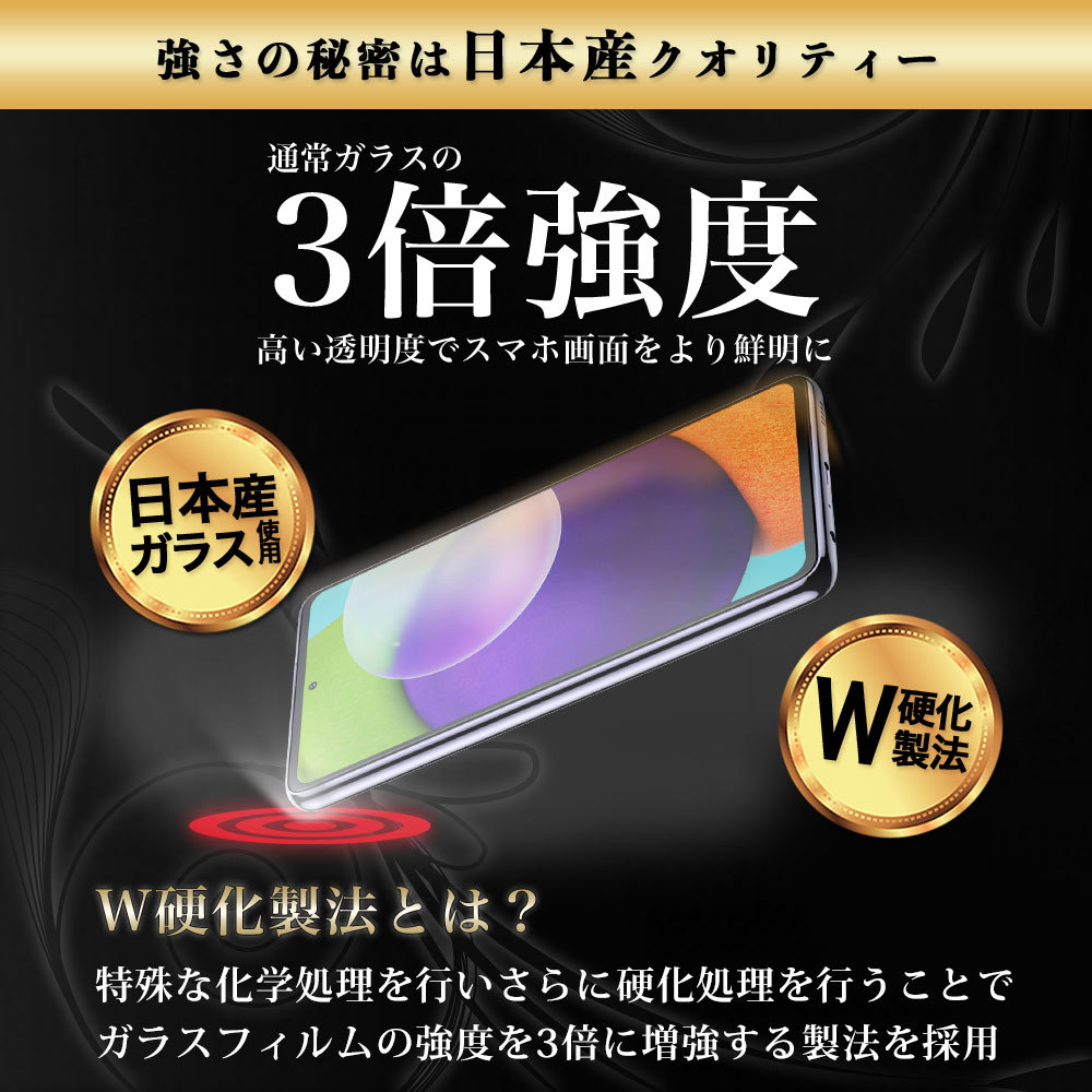 Galaxy A52 5G SC-53B 専用ガラスフィルム。全面保護・全面吸着タイプ。W硬化製法で一般のガラスフィルムの3倍の強度。180日完全保証付きです。