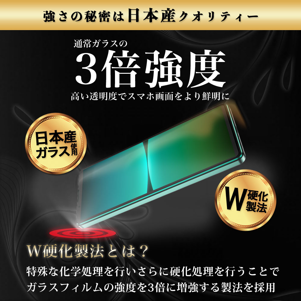 3倍強度!Xperia5 IV SO-54C SOG09 全面保護ガラスフィルム。W効果製法で強度をアップ!エッジ部分が丸みを帯びているラウンドカットタイプ。180日完全保証付き