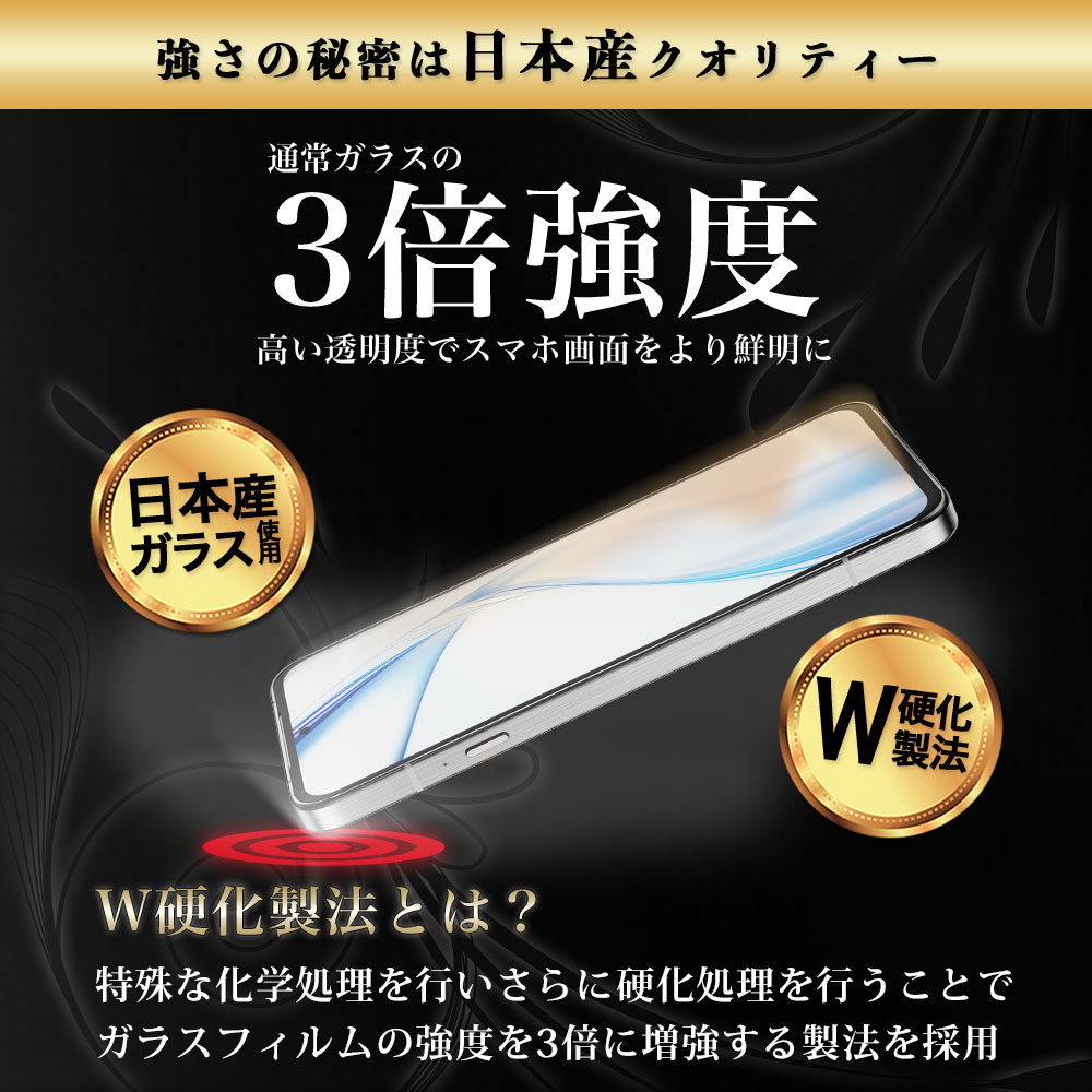 3倍強度!arrows Alpha F-51F / M08全面保護ガラスフィルム。W効果製法で強度をアップ!エッジ部分が丸みを帯びているラウンドカットタイプ。180日完全保証付き