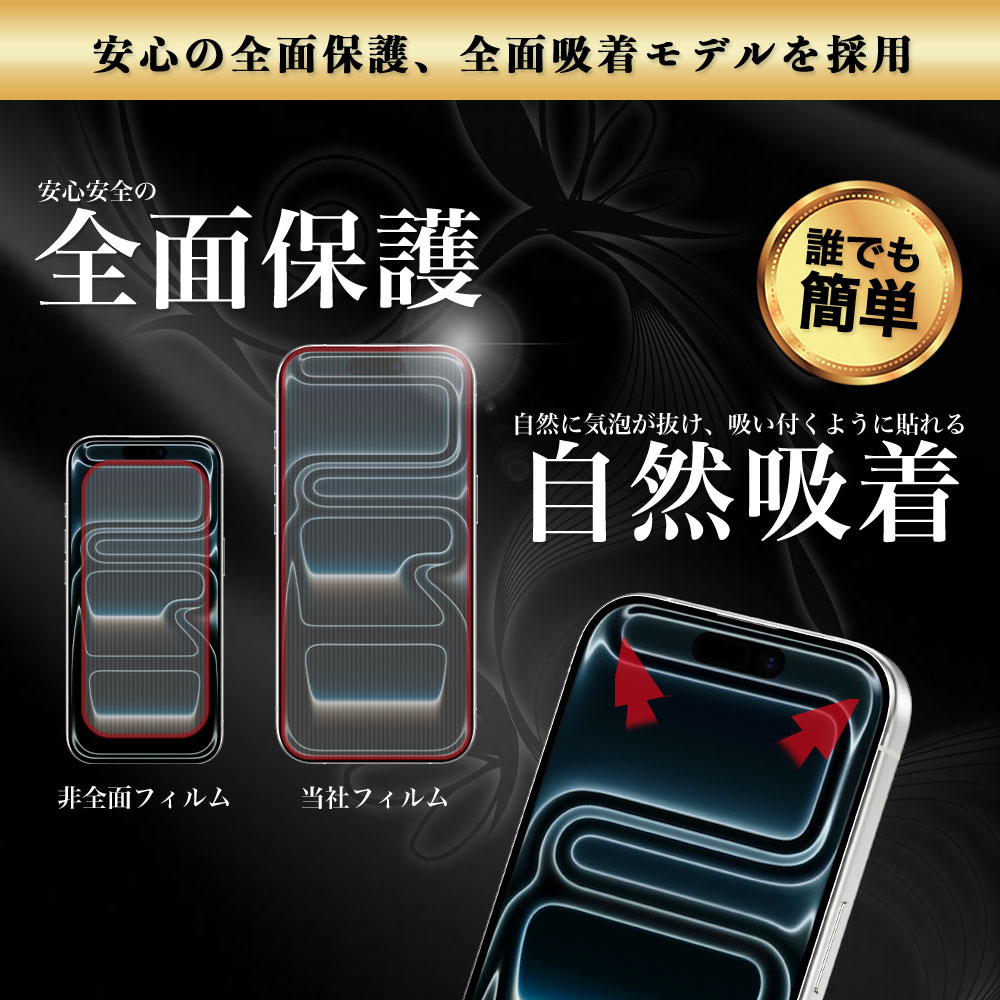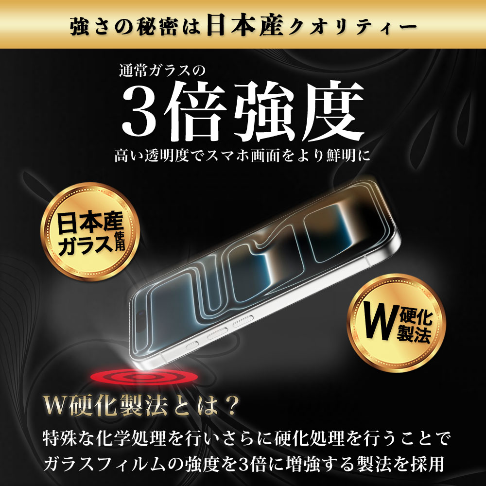 3倍強度!iPhone 17 Pro Max全面保護ガラスフィルム。W硬化製法×9H硬度、ラウンドエッジ&全面吸着。180日保証付き