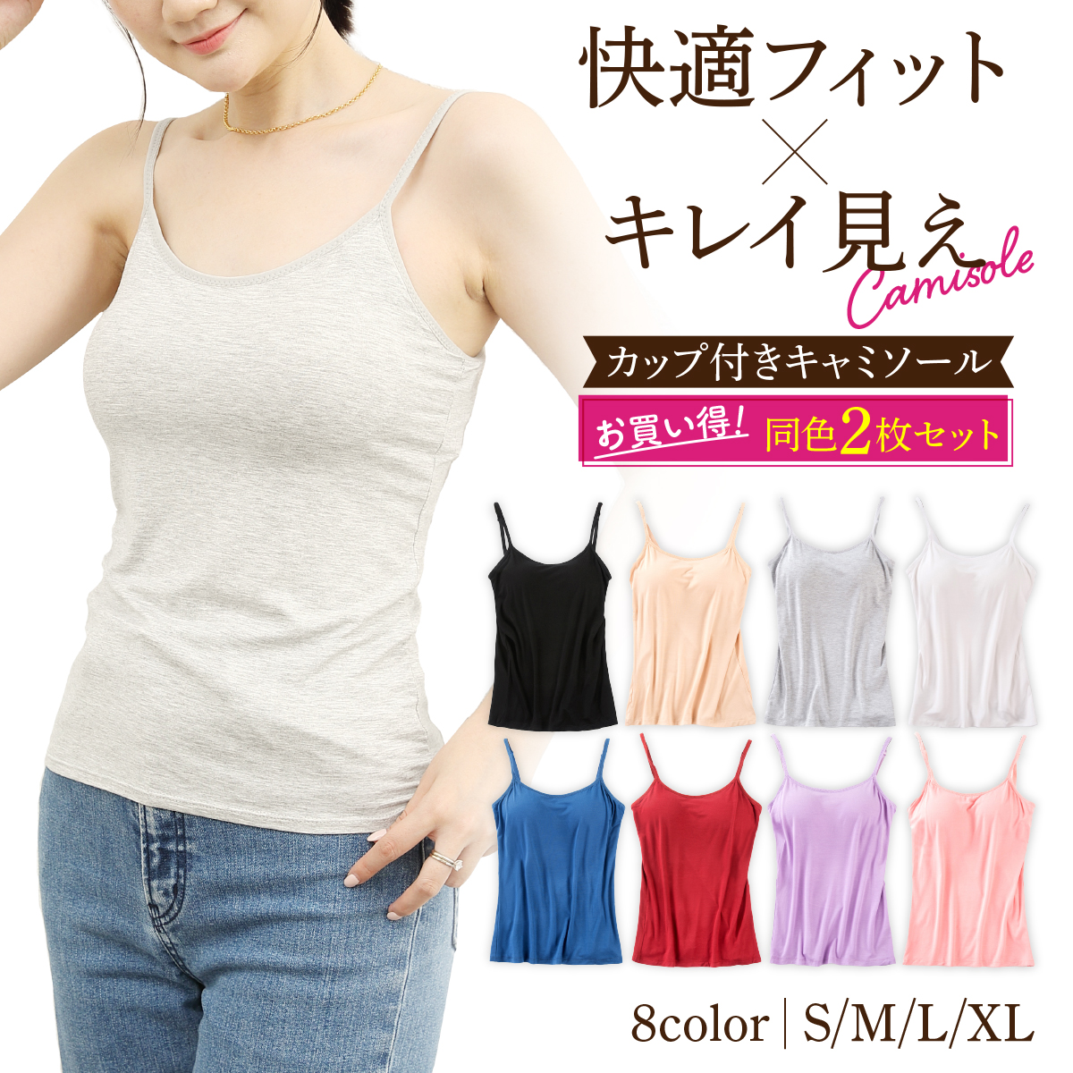 快適フィット×キレイ見え! カップ付き キャミソール 2枚セット