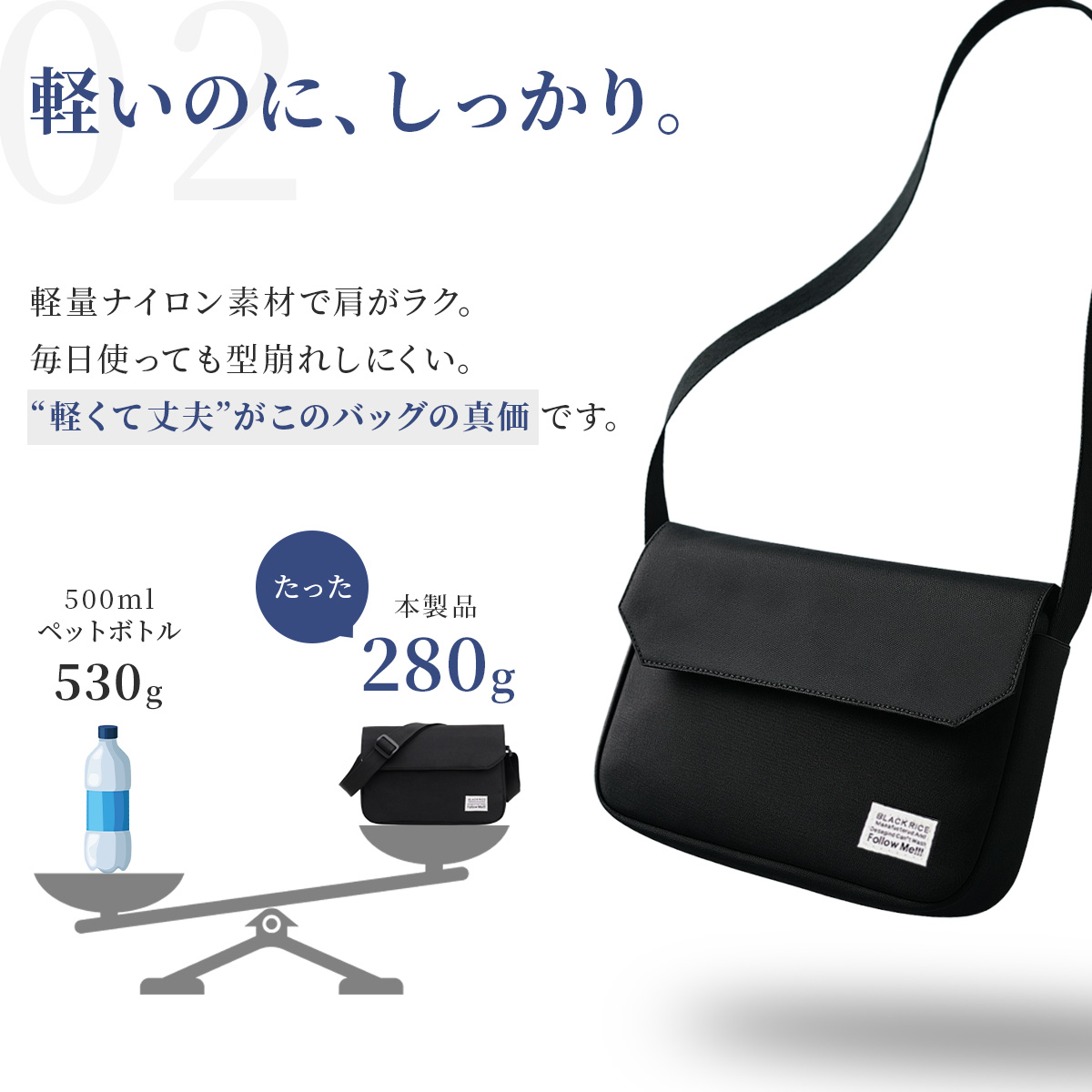 軽くて斜めがけできるショルダーバッグは、両手があくのでアクティブなシーンに最適!
