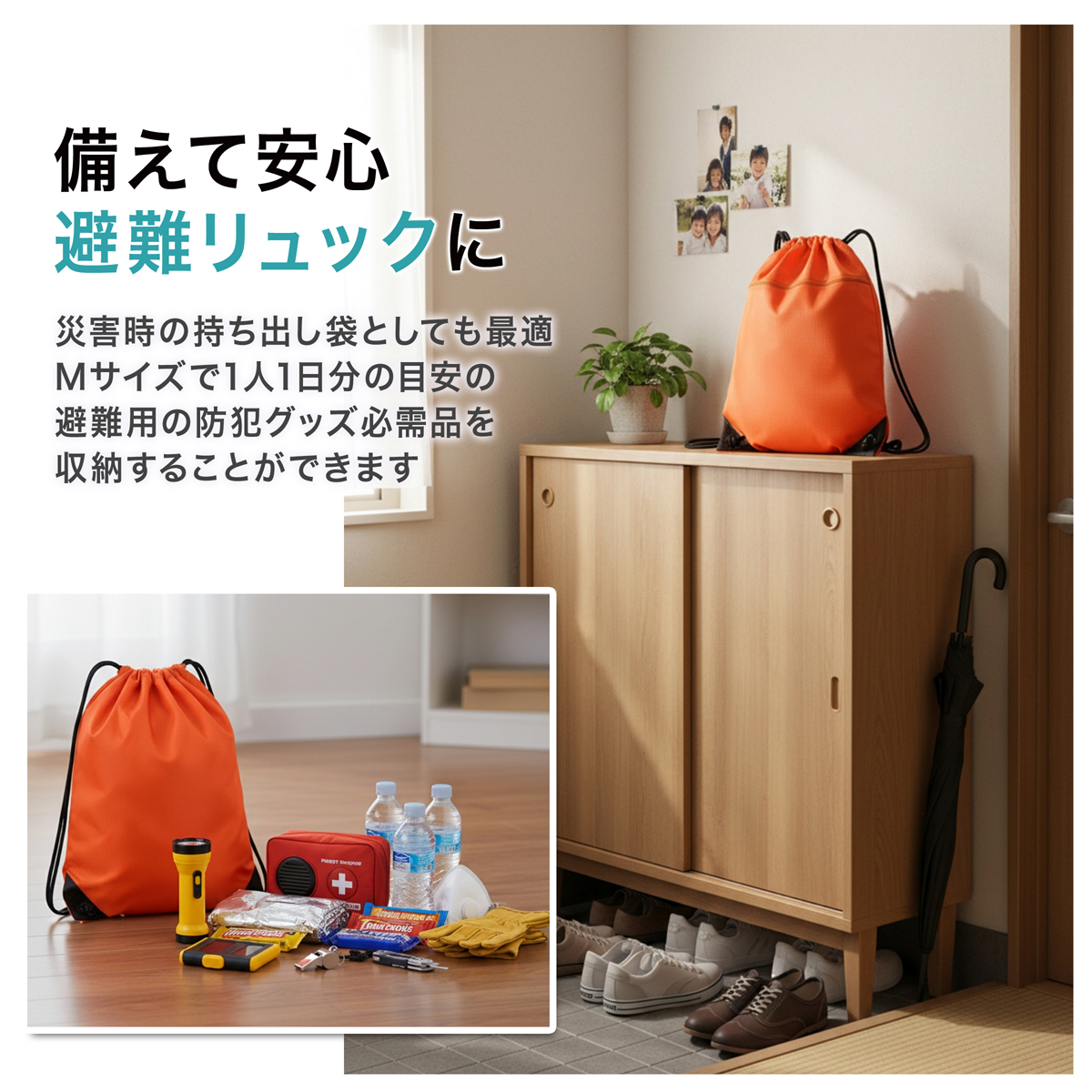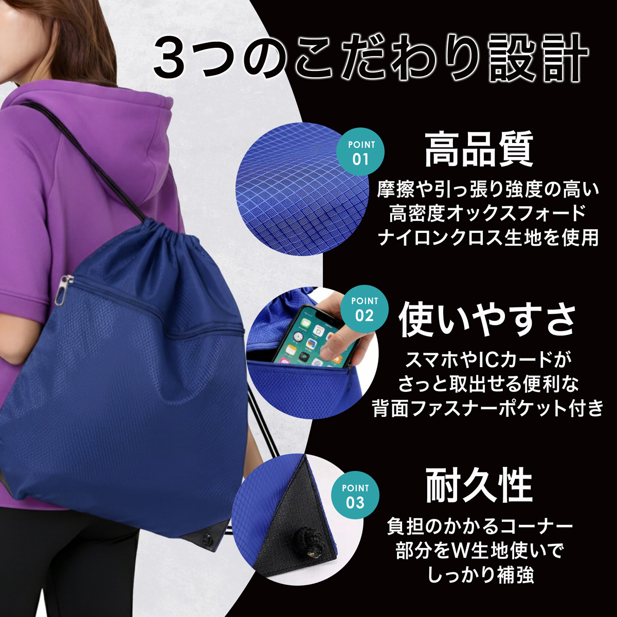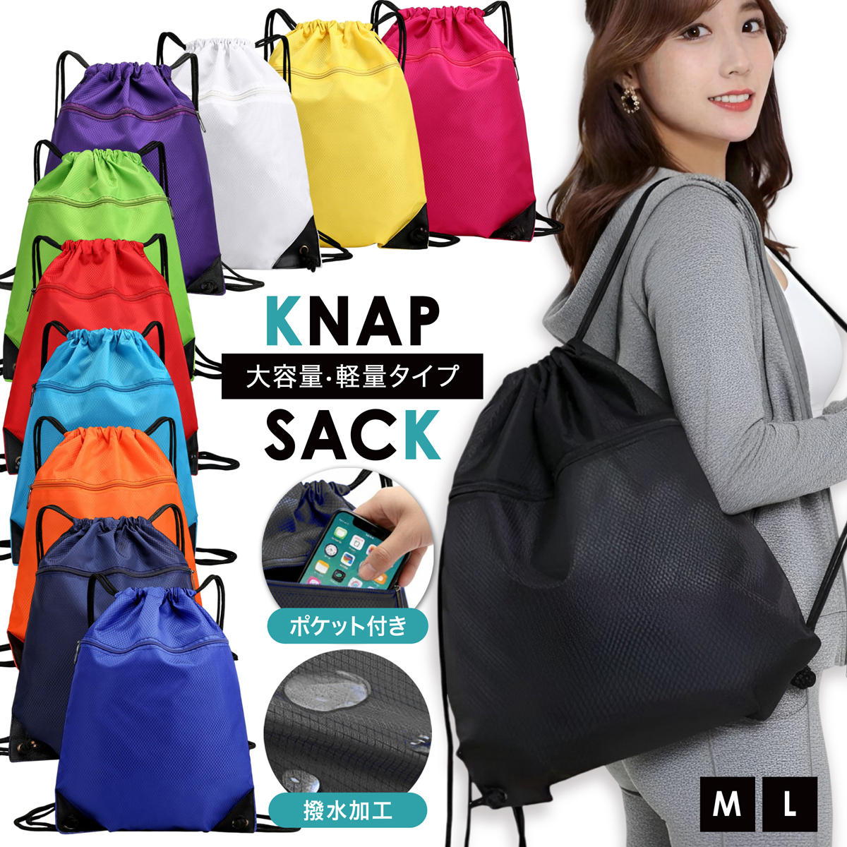 撥水 でしっかり生地の 大容量 ナップザック