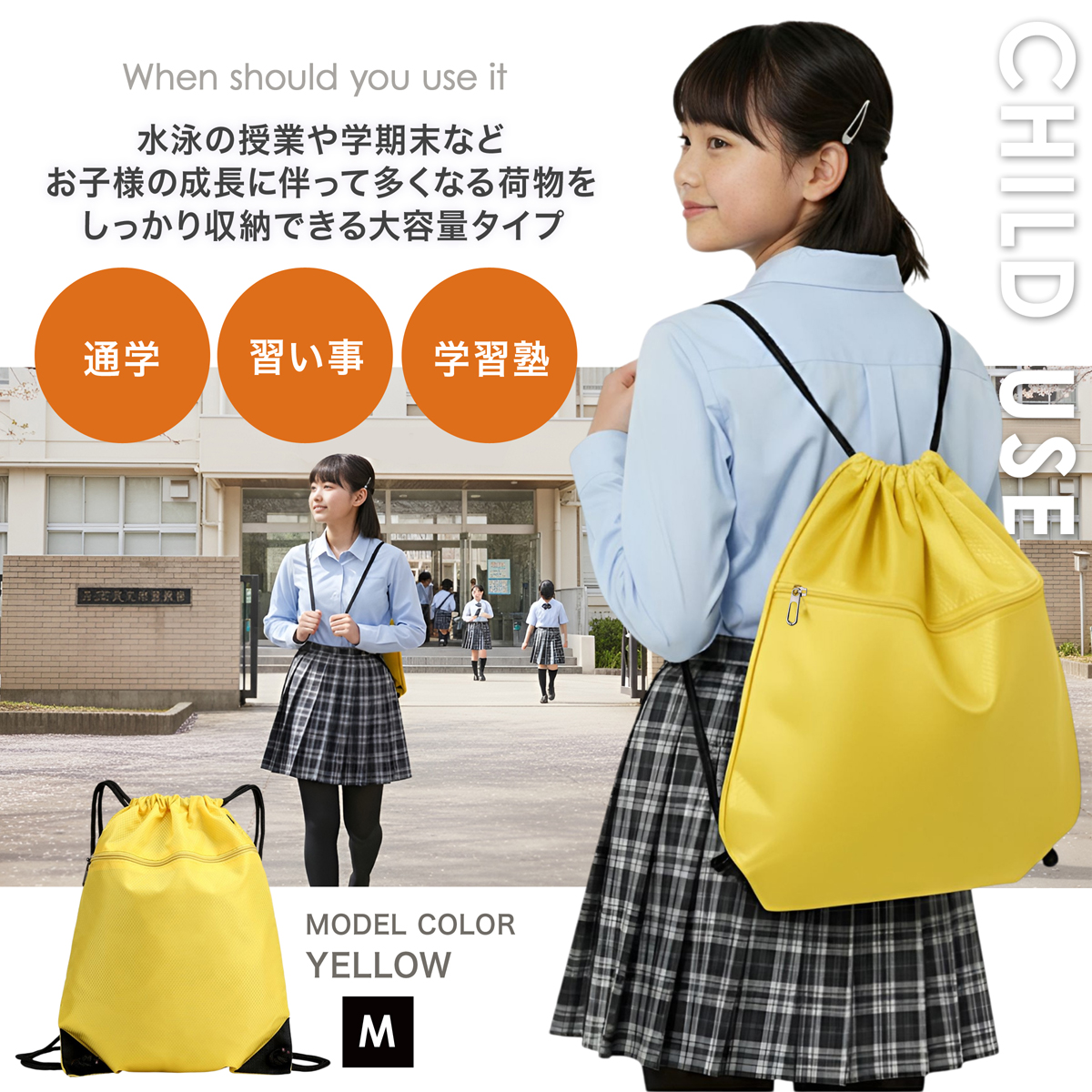 学校・部活・習い事・スポーツ・お出かけから旅行やアウトドアまで幅広く活躍します。
