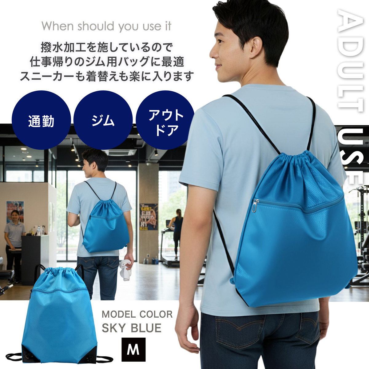 濡れたり汚れたりしやすい学校のプールや体育、ジム後の着替え入れに最適です。