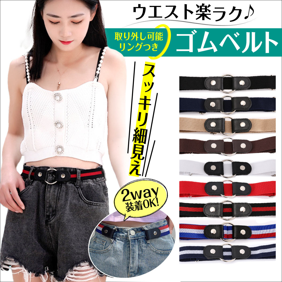 ゴムベルト レディース ベルト カジュアル ウエスト調整 ノーバックル ベルトレディース