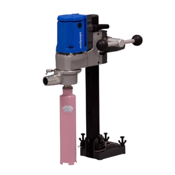 ・ダイヤモンドビットを使用し、鉄筋コンクリートをはじめとするあらゆる材質に対して、ホコリ、騒音公害の心配がなく、わずかな時間で穿孔するコアドリルです。コンクリート構造物に補修の必要がない、きれいな穴をあける機械として、ビルの配管用穿孔・テストピースの採取用穿孔等の様々な作業に使用されています。