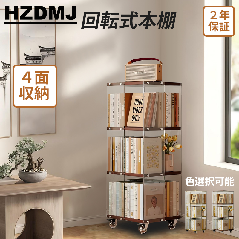 ブックタワー 回転式本棚 本棚 回転 ブックシェルフ 子供 回転ラック 大容量 スリム 飾り棚 省スペース 多目的ラック ブックタワー A4 絵本 CD DVD 【2年保証】