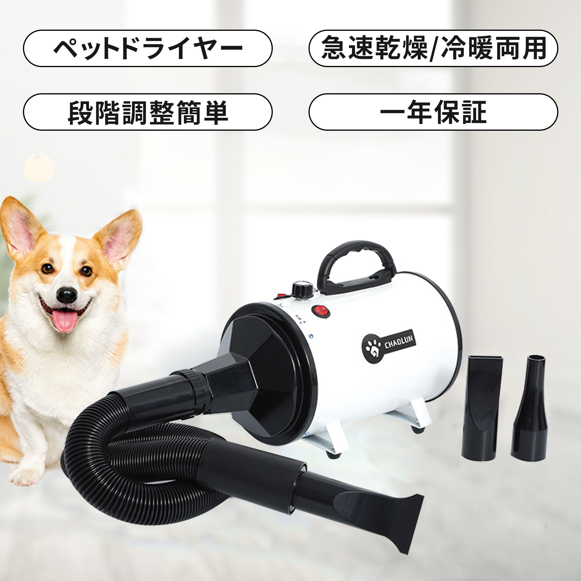 hzdmj ペット用ドライヤー 1年保証 大型犬 速乾 風量 温度調節 冷風 温風 業務パワー 使い分けノズル フィルター ペット用品 ホースドライヤー 強力