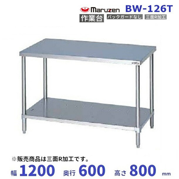 マルゼン 作業台 三面アール加工 バックガードなし BW-126T R加工
