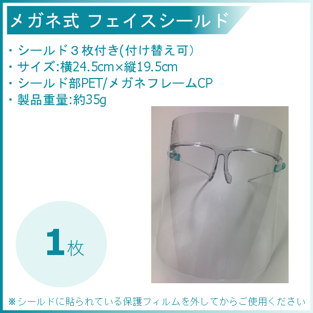 メガネ式 フェイスシールド 1枚 シールド3枚付 付け替え可