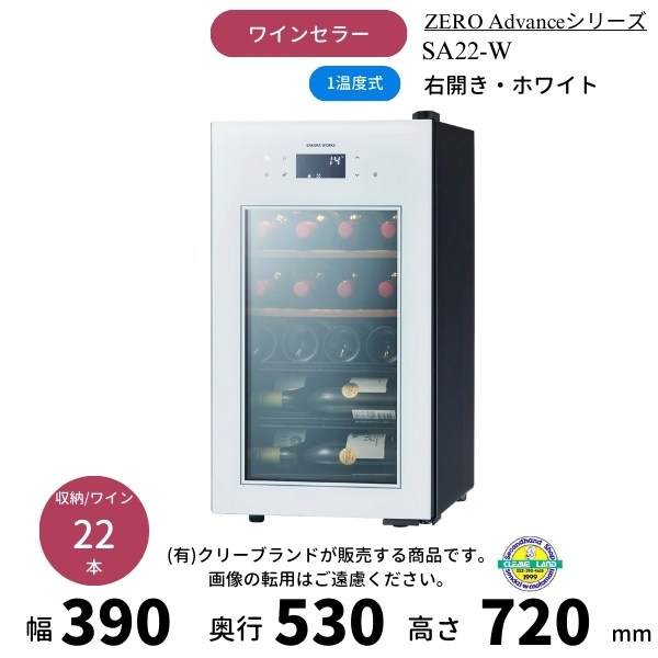 SA22-W ホワイト 右開き ワインセラー さくら製作所 ZERO Advance ワイン22本収納 1温度