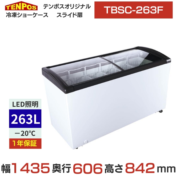 TBSC-263F 【テンポスオリジナル】冷凍ショーケース 曲面ガラス扉 263L 幅1435×奥行606×高さ842(mm) 【業務用/新品】【送料無料】