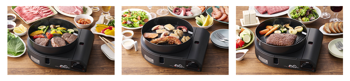 | プレートの温度を高温化させないことで脂の煙化を防ぐ! バーナーとプレートの間に適度に熱がこもる構造でプレート表面を約210〜250℃にコントロール。 |