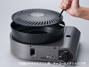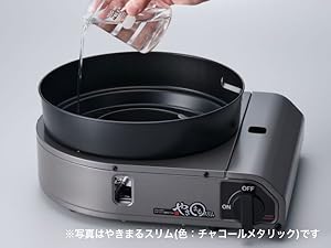 | 材質 | 本体:鋼板(粉体塗装) プレート:アルミダイカスト(フッ素樹脂加工)(プレート外径:233mm) 水皿:鋼板(耐熱塗装) バーナー:耐熱アルミダイカスト 点火つまみ:ABS 樹脂 |
