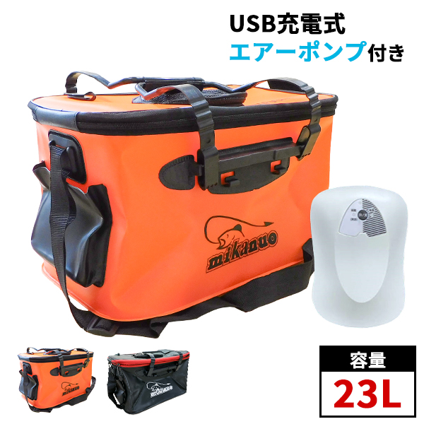 バッカン 酸素ポンプ付き 40cm 23L エアーポンプ 釣り 折りたたみ フィッシングバッグ バケツ 魚 送料無料