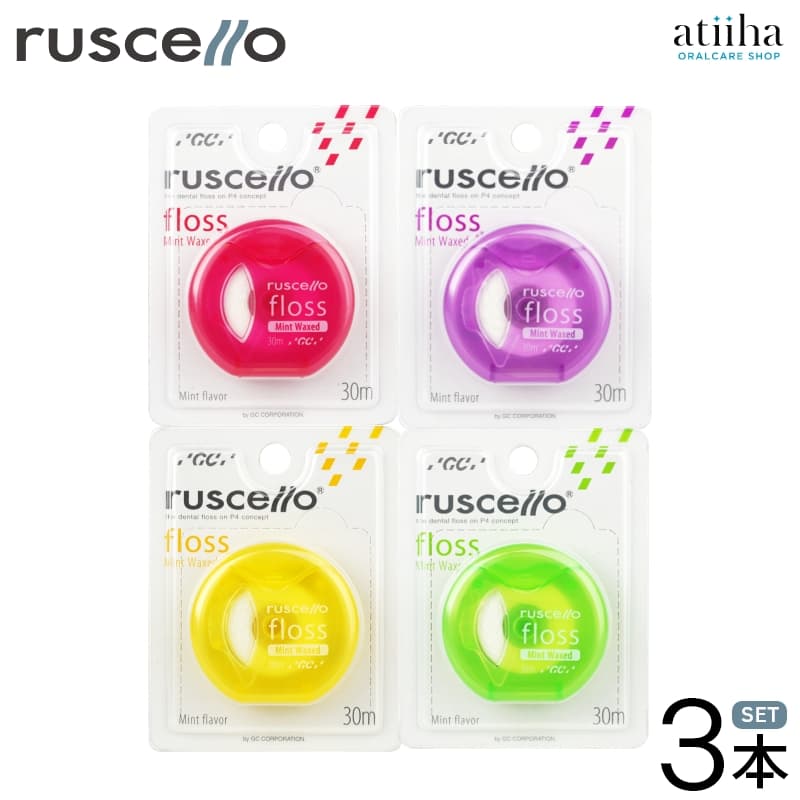 フロス ジーシー GC ruscello ルシェロ ミントワックス付き 3個セット 携帯用 高プラーク除去 カラフル プロ仕様 PTC対応 歯茎に優しい デンタルフロス