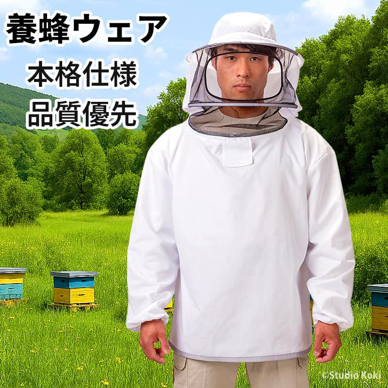 ![]() ![]() ●Beekeeping Wear Protective Suit Mesh Clear Vision ●ブランド:DIC ●型番:VG-002 ●材質 本体:ポリエステル95% 綿5% 黒メッシュ:ポリエステル100% 白メッシュ:ポリエステル100% レンズ:ポリカーボネート ●販売店:アイヒーリング正規販売店 ●生産:中国(日本企画)、業務用の蜂防護服ラプターと同工場で生産 ●セット内容:養蜂用ウェア本体、頭部ガードと胴体プロテクター 安心安全の蜂防護服のメーカーDICが提案する養蜂ウェア 蜂防護服ラプターの販売開始から約20年。ディックコーポレーションは、スズメバチという本当に恐ろしい相手から身を守るための商品開発に、長年真摯に取り組んできたメーカーです。 その確かな実績と技術力があるからこそ、日々ミツバチと向き合う養蜂家の方々に安全で快適、そして何より信頼できる養蜂用の服を提供できるのではないかと考えました。そんな想いとディックコーポレーションの技術が結実し、このたび、本当に安心して使える養蜂ウェアがついに誕生しました。 VG-002 養蜂用ウェアの特徴 品質重視の日本メーカーの養蜂ウェア。 プロ養蜂家から初心者まで、作業環境の安全確保。 ミツバチからの徹底防護設計。 クリアで見やすいレンズ。 高い通気性と広い視界で、夏の作業も快適。作業効率がアップします。 洗濯可能で、いつも清潔保持。 体に合わせてサイズ調整が可能。 安心・安全・信頼性を最優先。 ・安価な製品に不安を感じ、多少価格が高くても信頼性を重視する方に。最初から良い物を選びたい方に。 ・体験型観光農園や学校・農業体験施設、教育機関での導入にも最適。安全性とコストのバランスを重視する方へ。 ・実績あるメーカー品や、有資格者推奨品をお探しの方におすすめ。 ■快適 レンズ付で視界良好 フェイスライン型前かけ防止。 顔との距離を保つワイヤー仕様。 レンズ位置がズレない。 ■通気 360度メッシュ仕様 熱のこもりを防いで快適。 細かな虫の侵入をガード。 ■便利 隙間から水分補給可能 頭部と顔部分のプロテクターはファスナーで取付。 ■調整 サイズ調整可能 頭・顔周りはコードロックでサイズ調整可能。 袖はゴム入りで手首にフィット。 養蜂用ウェアの袋パッケージサイズは、縦55cm×横40cm×厚み約8cmです。 ■機能詳細 商品の主な特徴をご紹介します。 ![]() ![]() ■レンズ付で視界良好 クリアで見やすく、熱に強い。ポリカーボネイトレンズを使用。 フェイスライン型崩れ防止。顔との距離を保つワイヤー仕様。 顔を動かしても、レンズ位置がずれません。 ![]() ![]() ■メッシュ生地が熱のこもりを防いで快適 360度メッシュ仕様。 マーキメッシュで細かな虫の侵入をガード。 正面は黒色メッシュで視界良好。 白メッシュ:柔らかく細い 黒メッシュ:丈夫で太い ![]() ![]() ■頭部と胴体プロテクターは分離型 ファスナーで頭部と胴体プロテクターは取付。 隙間から水分補給可能 胴体プロテクターは洗濯可能で清潔に使用できます。 組成:ポリエステル95% 綿5% ![]() ![]() ■フリーサイズで体型を選ばず使えます 頭・裾周りはコードロックでサイズ調整可能。 袖は手首ゴムパイピング。 ![]() プロの養蜂家が語る、本当に信頼できる養蜂ウェア 日々の養蜂作業は、私たちにとって喜びであると同時に、常に「安全」と向き合う時間でもあります。特に、何万ものミツバチと間近で接する巣箱の管理や採蜜作業においては、身を守るウェアの性能が、作業の質、そして何よりも私たちの安心感に直結します。安価な製品も多く出回っていますが、現場で求められるのは、価格ではなく確かな「信頼性」と「機能性」なのです。 長年、様々な養蜂ウェアを試してきた私が、自信を持ってお勧めできるのが、このDIC製 養蜂ウェア VG-002です。あのスズメバチ対策で培われたディックコーポレーションさんの揺るぎない技術力が、私たちのミツバチとの作業のために注ぎ込まれているその事実に、まずプロとして深い共感を覚えました。 このウェアが現場でいかに頼りになるか、いくつか具体的な利点を挙げさせていただきます。 特筆すべきは、その「視界のクリアさ」です。ポリカーボネート製の大きなレンズは歪みが少なく、熱にも強いため、長時間の作業でも視界が遮られることがありません。巣箱の中の様子、女王蜂の動き、幼虫の育ち具合…デリケートな観察が求められる場面で、クリアな視界がどれほど重要か、養蜂家なら痛感しているはずです。顔との距離を保つワイヤーのおかげで、レンズが曇りにくく、鼻先に触れる不快感がないのも、地味ながら非常に助かるポイントです。 そして、夏場の作業に不可欠な「圧倒的な通気性」。360度を覆うメッシュ生地は、まさに「涼しい」の一言に尽きます。熱がこもりにくく、全身を汗が流れ落ちるような不快感から解放されるだけで、作業の集中力が格段に向上します。細かなマーキメッシュは小さな虫の侵入まで防いでくれる徹底ぶり。快適でいられるからこそ、焦らず丁寧に作業を進めることが