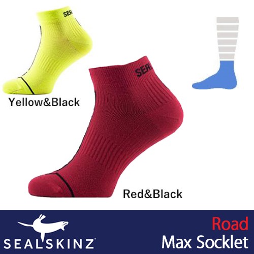 SEALSKINZ(シールスキンズ)の撥水加工ソック2016年-2017年ロードサイクルモデル「Road Max Socklet」は、優れた透湿性と湿度のコントロールが必要となるような条件下でのロードサイクリングに必携のシングルレイヤー、クローズフィッティング、くるぶし丈ソックス。