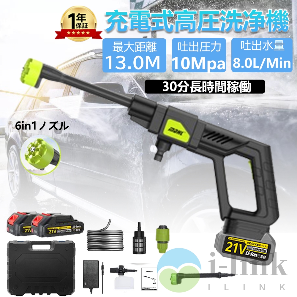 【同梱内容】:洗浄ガン本体*1、給水ホース*1、バッテリー*1、充電器*1、クイックコネクタ*1、調節ノズル*1、自吸式フィルター*1、バブルポット*1、収納ケース*1