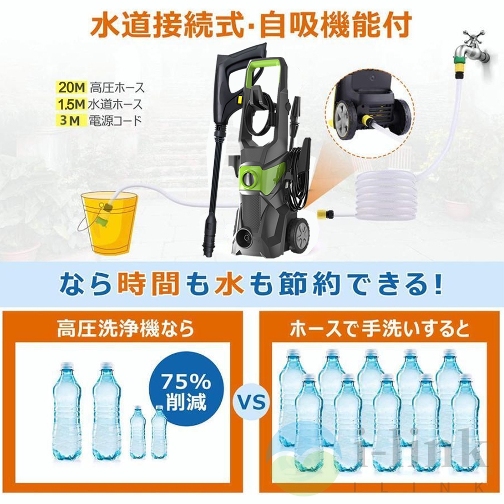 高圧洗浄機 強力噴射 静音 最大吐出圧力17MPa 水道直結 自吸両用 高圧ホース20m 水道ホース1.5m 電源コード3m 業務用 家庭用 省エネ 小型軽量 心者向け 洗車2024