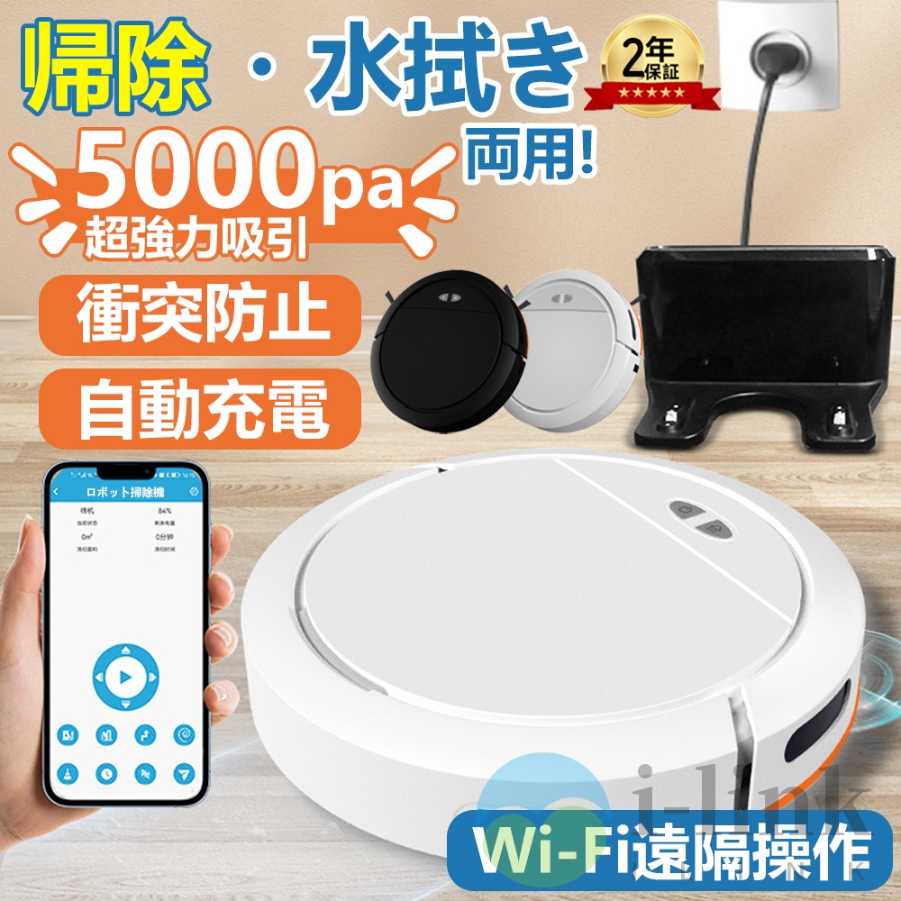 ロボット掃除機 水拭き 5000Pa 強力吸引 高性能 シンプル操作 超薄型 静音 自動充電 水拭き両用 あす楽 アレクサ WiFi 130分間連続稼働 乾湿拭き対応