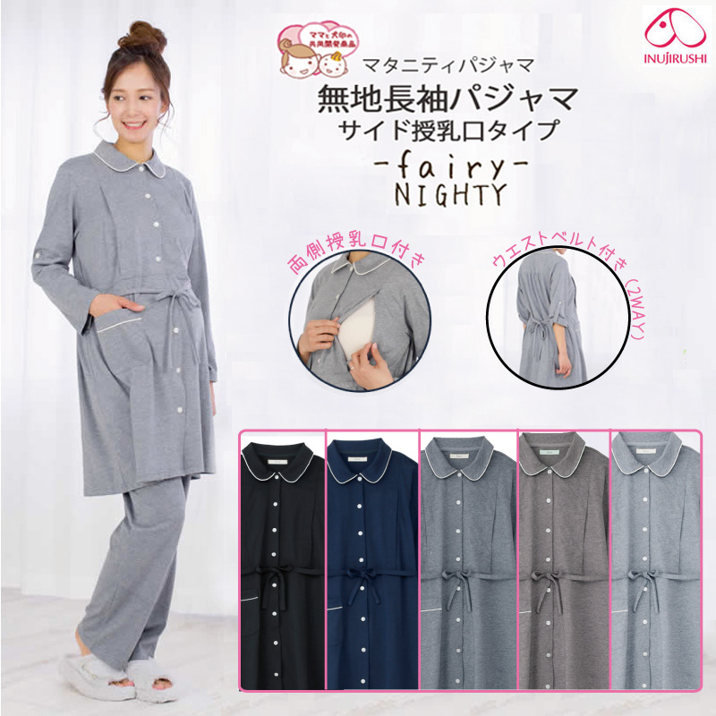 犬印 犬印本舗 産前産後兼用 fairy NIGTY〜フェアリーナイティ〜マタニティ パジャマ 長袖 衿付 サイド授乳口付 長袖パジャマ 200-8715