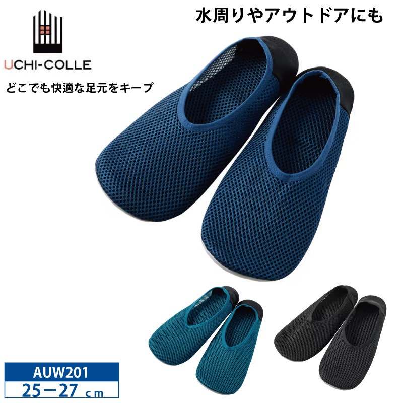 GUNZE gunze ぐんぜ ウチコレ スリッポン おうちスリッポン スリッパ メンズ 紳士 男性用 ルームシューズ ルームソックス ルームアイテム 旅行 ホテル 飛行機 キッチン 水廻り アウトドア 水遊び 通気性 メッシュ 軽量 快適 抗菌 滑りにくい AUW201