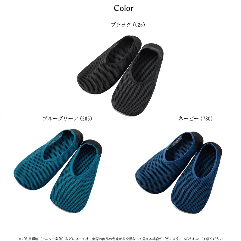通気性の良いメッシュ素材で、長時間履いてもムレにくく、蒸れやすい季節にも快適に使用可能。