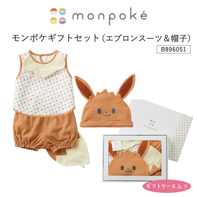 犬印 犬印本舗 モンポケ ギフトセット B896051(エプロンスーツ&帽子) イーブイ(ベビー70〜80サイズ)