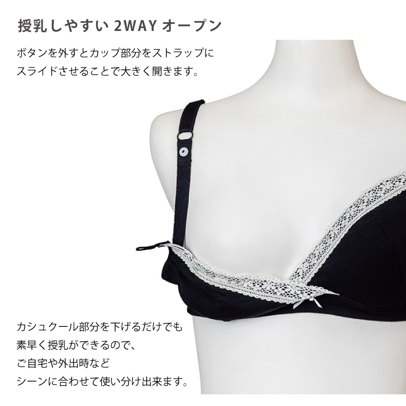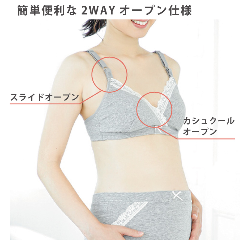 ○カシュクールオープンとスライドオープンの2WAY授乳ブラ。