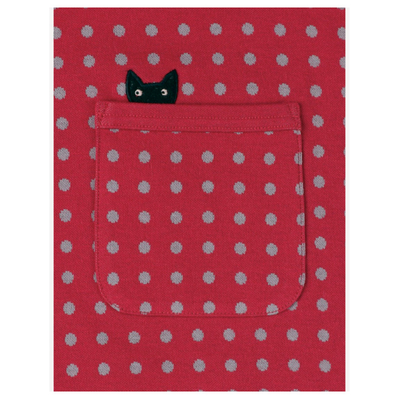 ・ポケットから顔をのぞかせている黒猫のアップリケがデザインポイント