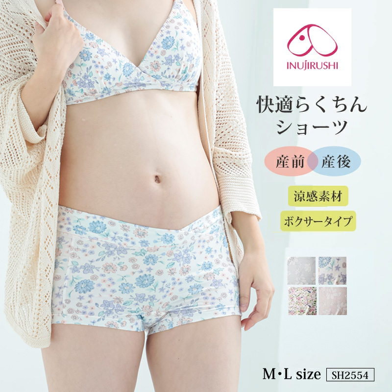 犬印 犬印本舗 INUJIRUSHI マタニティ 妊婦 妊娠 出産 産前産後 ボクサーショーツ ローライズ パンツ 下着 快適 らくちん 涼感 フロントクロス構造
