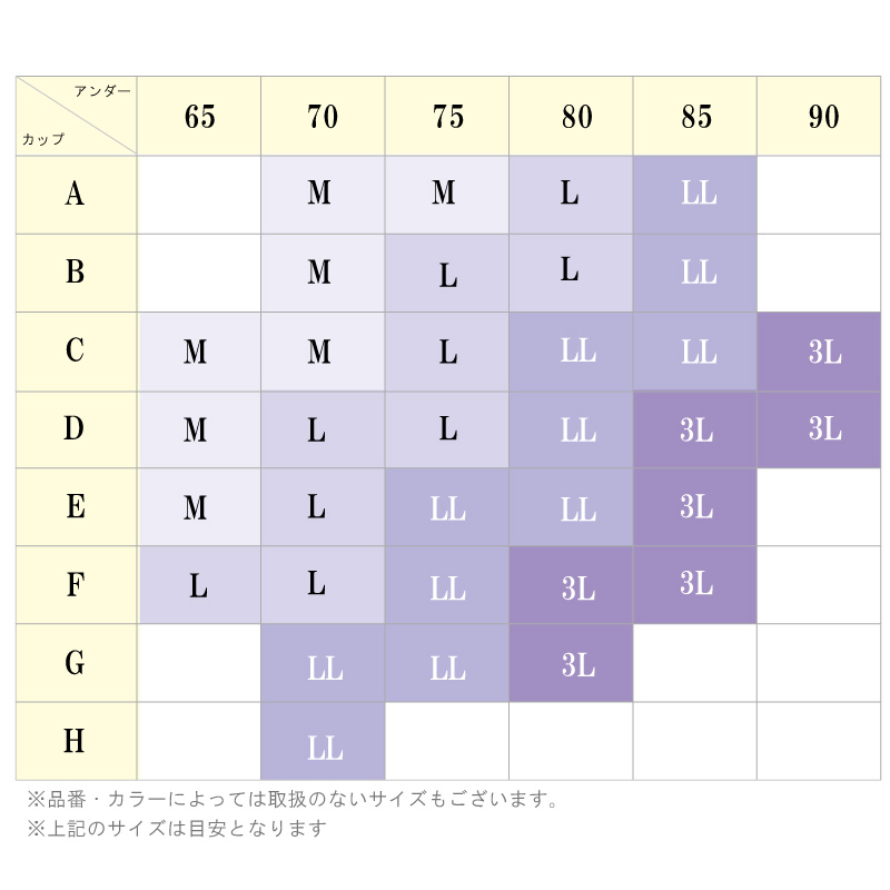 Lサイズ:バスト86〜94cm