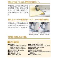 エアスルー(自動エア糸通し)、空環(からかん)可能、差動送り、押え上げレバー連動式ドロップフィード機能、専用糸通し具・裾引きガイド付き 、バリエーションをグンとひろげる3つのステッチ(チェーンステッチ・トリプルカバーステッチ・カバーステッチ)