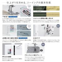 下糸巻き、ひざ上げレバー、LEDライト、広いボビンケース取出口、ベルベットと裏地の縫い合わせ、太糸ガイド、押え圧力調節、アタッチメント取付プレート、