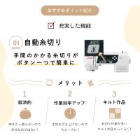 液晶ディスプレイ(LCD)、クイック模様選択、ワンアクション糸通し、自動糸調子、自動糸切り、7枚送り歯、LEDライト、押え固定ピン、お好みスピード調節、止め縫いボタン、ゆっくりスタート、ワンタッチスロー、針上下停止位置切替、パワフル貫通力、ドロップフィード、簡単下糸巻き