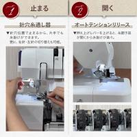 1本針2本糸ロック、1本針2本糸飾り縫い、1本針3本糸ロック(幅が狭い)、1本針3本糸ロック(幅が広い)、2本針4本糸ロック、巻きロック、細ロック、差動送り機能、自動針穴糸通し、オートテンションリリース、フリーアーム、押え圧調節、巻きロック切替レバー