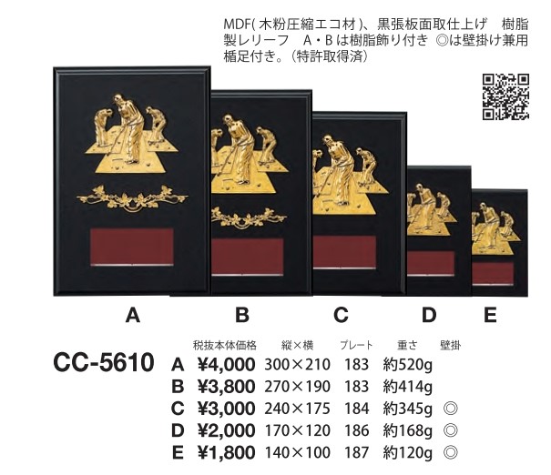 表彰楯 高さ17 cm Dサイズ グランドゴルフ専用盾 CC-5610D セール中格安 文字代金無料