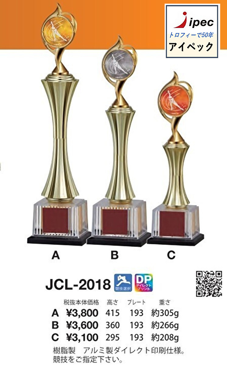 トロフィー JCL-2018−B Bサイズ 高さ360mm 表彰 金、銀、銅3色から選べます