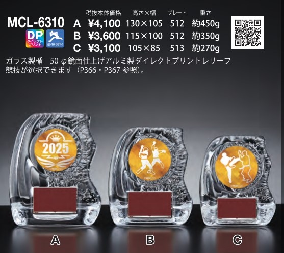 盾 ガラス トロフィー 表彰 Bサイズ MCL-6310B 盾 ガラス ゴルフ イベント 野球 サッカー バスケ
