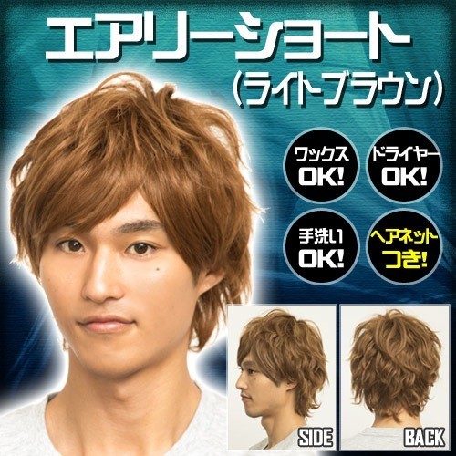 ヘアネット付き WIGGY RICH メンズ エアリーショート ライトブラウン /メンズウィッグ 男性用 かつら コスプレ ファッション イベント (879992)