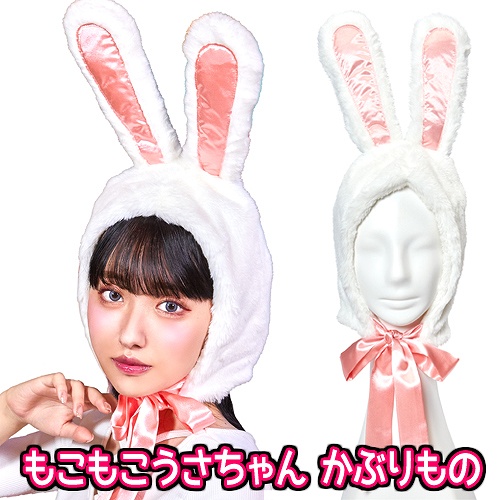 もこもこうさちゃん かぶりもの /うさぎ コスプレ かわいい ラビット 仮装 干支 年賀状 撮影 イースター アニマル ハロウィン イベント (C-0841_901204)