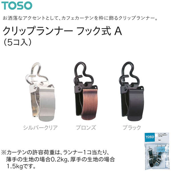 【取り寄せ商品】トーソー クリップランナーフック式A (5コ入)シルバークリア/ブロンズ/ブラック