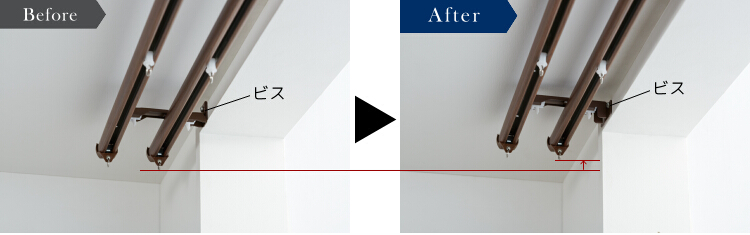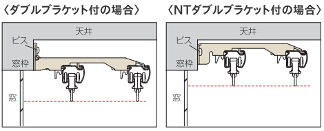 ![]() ![]() 取付け場所の下地の高さが足りない時に スペースが狭く、窓枠に取付ける場合に。 NTダブルブラケットならビスをブラケットの横に打てるので、取付けが可能です。 さらにカーテンの吊る位置も上がり光漏れを抑えます。 ![]() | ||