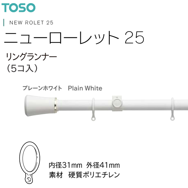 【アウトレット】トーソー カーテンレール ニューローレット25 部品 リングランナー(1袋5コ入)プレーンホワイト