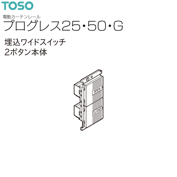 トーソー電動カーテンレール プログレス 25・50・G スイッチ用部品 埋込ワイドスイッチ2ボタン本体(1コ)