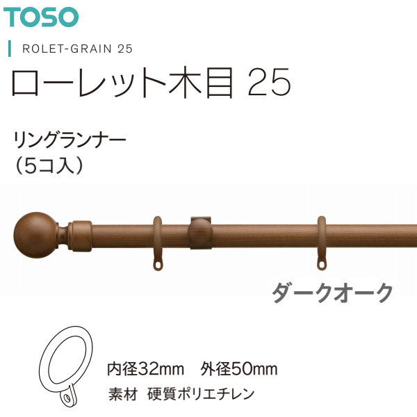 【アウトレット】TOSO(トーソー) カーテンレール ローレット木目25 部品 リングランナー(1袋5コ入)ダークオーク