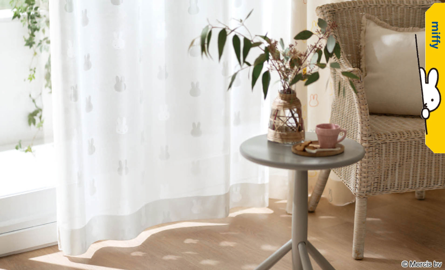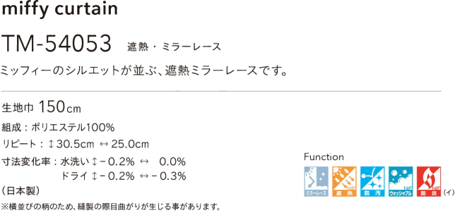 ミッフィー(リリカラ)オーダーミラー/遮熱/防汚レースカーテン TM-54053 仕上り巾50〜88cm×仕上り丈101〜120cm レギュラー縫製 約1.5倍2つ山ヒダ